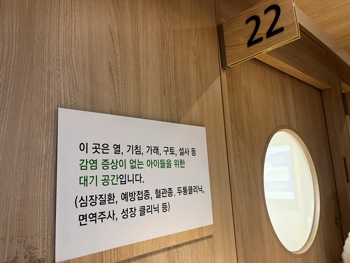 신생아 접종이나 너무 어린아이들은 이 방에서 대기를 하다다 순서가 되면 진료를 받을 수 있다.