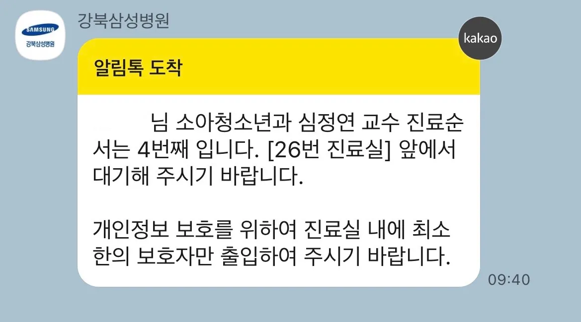 그리고 좋은 점, 이렇게 진료 4번째 전 순서가 되면 알림톡이 온다.
