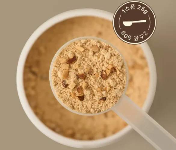 동봉된 스푼(25g)으로 가득 채워 2스푼+물 또는 우유 200ml 정도 넣으면