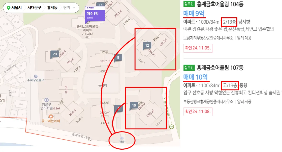 같은 아파트라 하더라도 어느 동에 있는지 저층인지 고층인지에 따라 매매가 차이가 많이 난다.